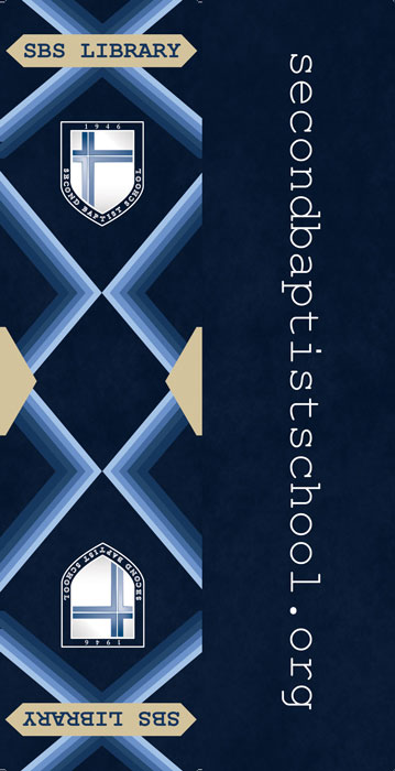 Print design of a bookmark for Second Baptist School's library. This is the front and back of the bookmark.